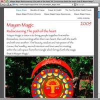 "Mayan Magic’s vision is to bring people together first within themselves, reconnecting within their own heart, then with the earth and with one another. The beauty, wisdom and raw power of the Cacao, the humility, sacred intention and love used in creating within the cafe space form the triangle which brings forth the magic that IS Mayan Magic"..